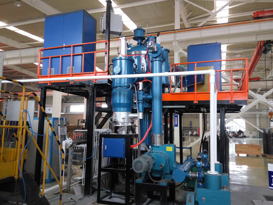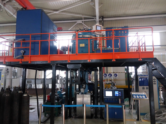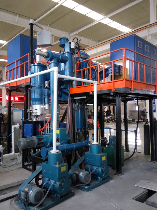 真空感應凝鑄爐是利用中頻感應加熱原理,在真空或保護氣氛下,將稀有金屬或特種合金在熔煉坩堝內熔化后,澆入凝鑄模具內,凝鑄模具通過電阻加熱進行恒溫保溫,在恒溫狀態下,由模具升降機構通過一定速度緩慢將模具移出保溫感應器,通過模具底部托盤水冷及外部水冷罩將金屬液體冷卻凝固;是為各種稀有金屬及特種合金及其它材料的工業生產和試驗而設計的;真空感應凝鑄爐還具有傳統鑄錠功能,能實現緩冷鑄棒和傳統鑄錠的快速切換。